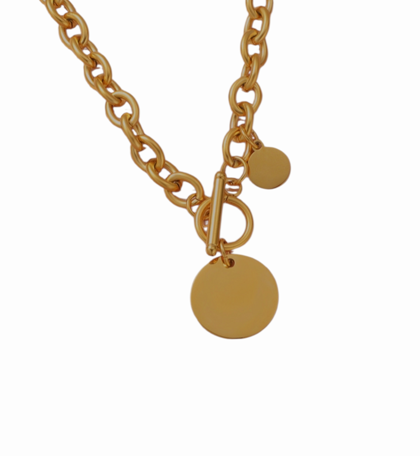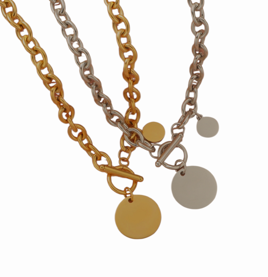 The Paisley Chain is a chunky style choker chain necklace with circle pendant.